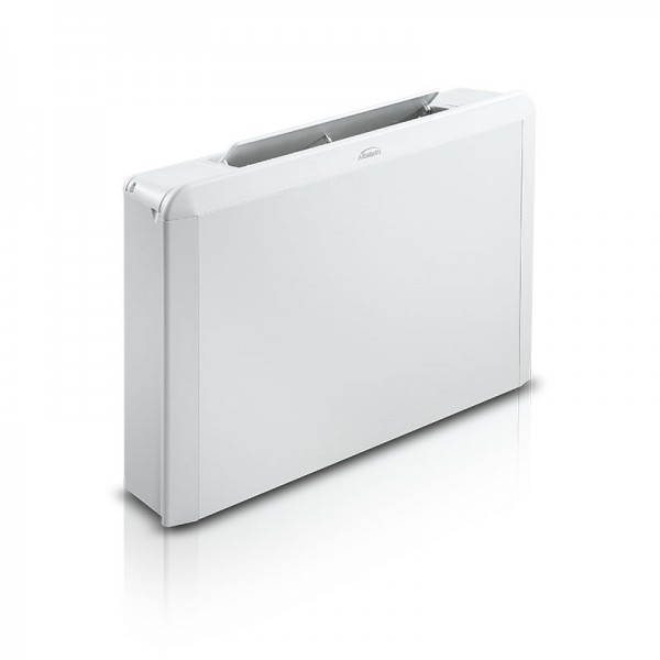 Dimensioni compatte, flap con microinterruttore che interrompe il funzionamento, attacchi idraulici reversibili, mobile in acciaio e ABS, certificazione Eurovent.